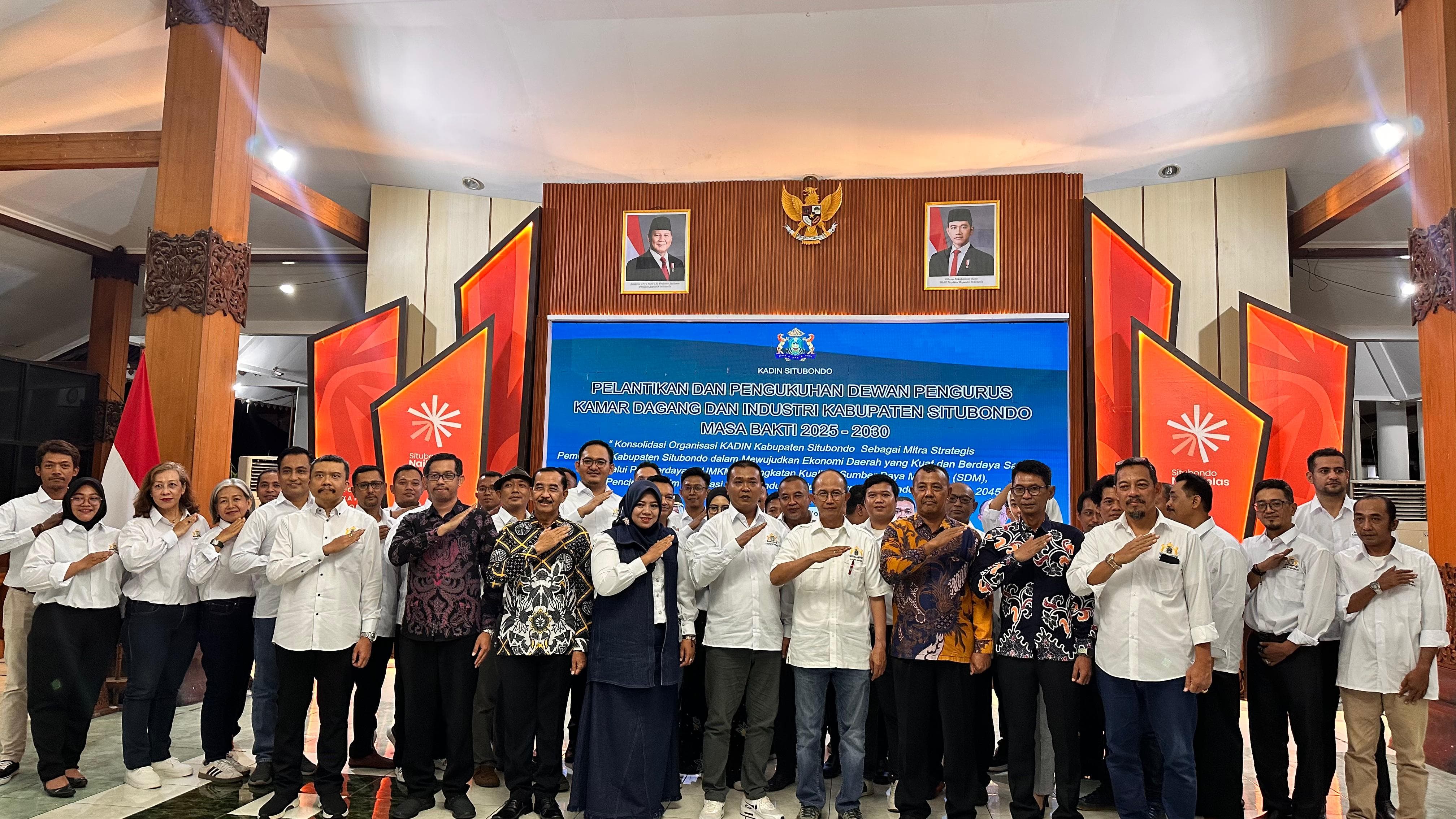 Situbondo,seemetris.idhttp://seemetris.id Ketua Umum Kamar Dagang Indonesia (Kadin) Jawa Timur, Adik Dwi Putranto melantik Puluhan Pengurus Kadin Kabupaten Situbondo, masa bakti 2025-2030, Senin (28/7/2025) malam.